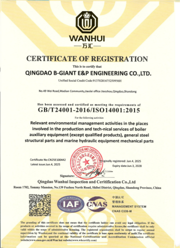 Qingdao Bojie Environmental Protection Engineering Co., Ltd. est un fabricant professionnel spécialisé dans le soudage de structures métalliques, l'usinage de précision et la fabrication d'équipements complets, avec des droits d'importation et d'exportation indépendants. Situés à Jiaozhou, Qingdao, nous bénéficions d'un transport pratique et d'installations de soutien complètes. Nous possédons 33 300 ㎡ de terrain et 16 000 ㎡ d'ateliers, équipés de plus de 120 ensembles d'équipements de pointe, notamment la découpe CNC, le soudage, l'usinage, le sablage et la peinture. Notre système de tests est complet, avec des inspecteurs certifiés et des laboratoires coopératifs accrédités CNAS, garantissant une qualité stable et fiable.